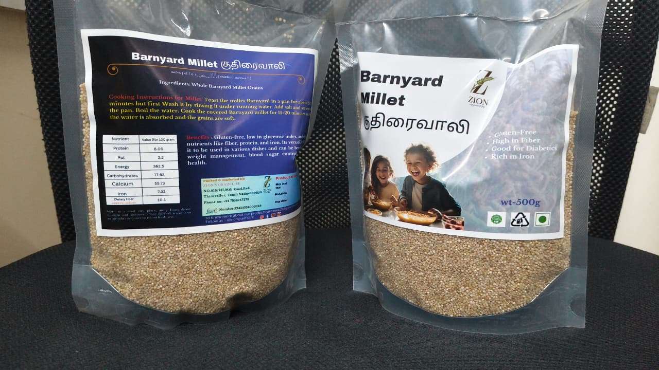 Barnyard Millet (Kuthiraivali) is a gluten-free, nutrient-dense millet ideal for diabetic, weight-conscious, and heart-health-focused diets. It is rich in protein, dietary fiber, iron, and low in glycemic index, making it a smart daily staple.