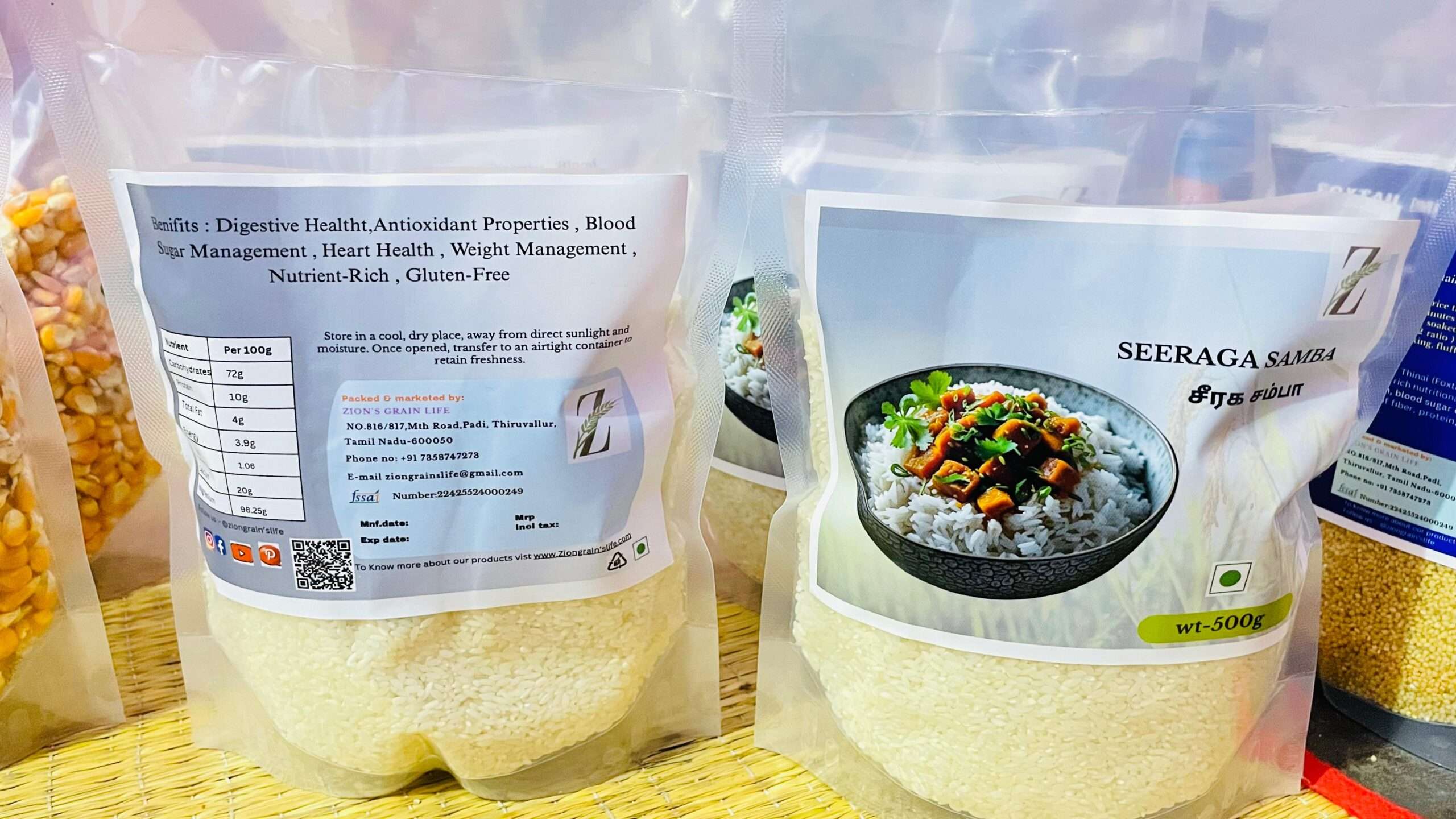 Seeraga Samba rice is named after cumin seeds (seeragam) for its tiny size and fragrance. Favored for traditional biryani, it has anti-inflammatory properties and supports gut health and digestion. A flavorful, premium rice for festive meals.